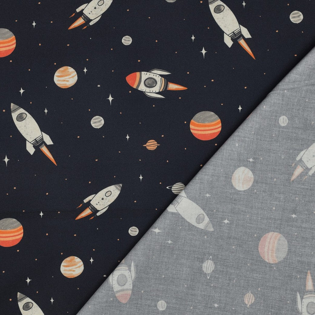 Bald erhältlich - Baumwolle digital Weltraum dunkelblau