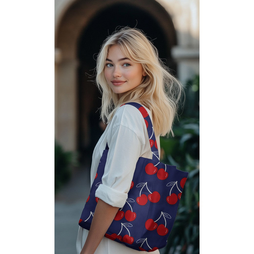 Beschichtete Baumwolle - Cherries Kirschen - kobalt blau rot - Poppy