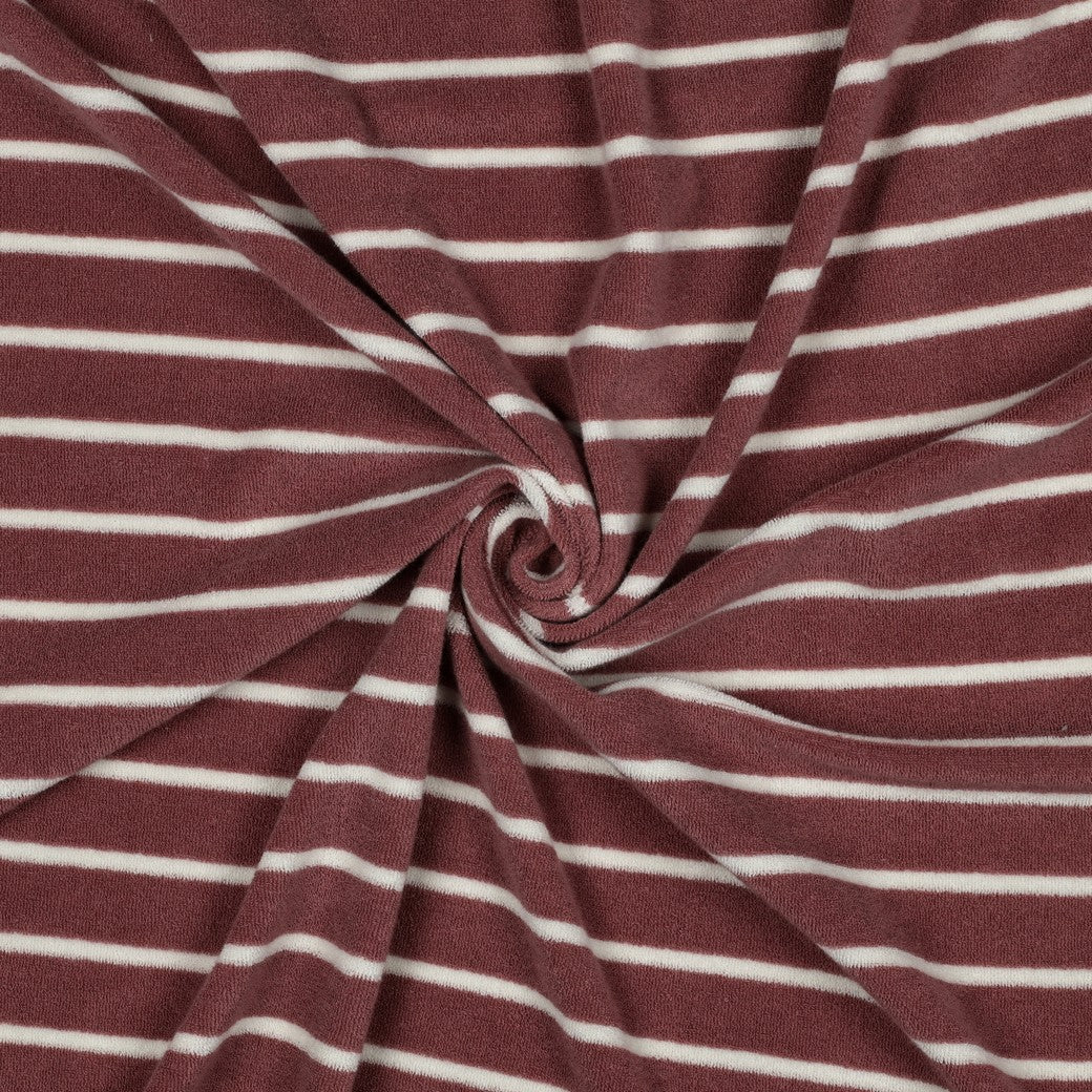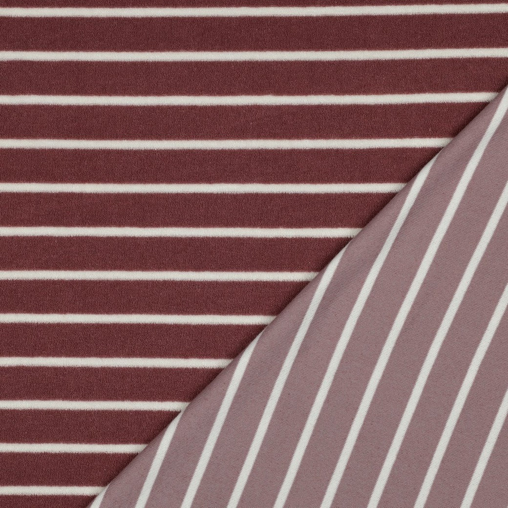 Bald erhältlich - Frottee Baumwolle garngefärbt Streifen mauve ecru