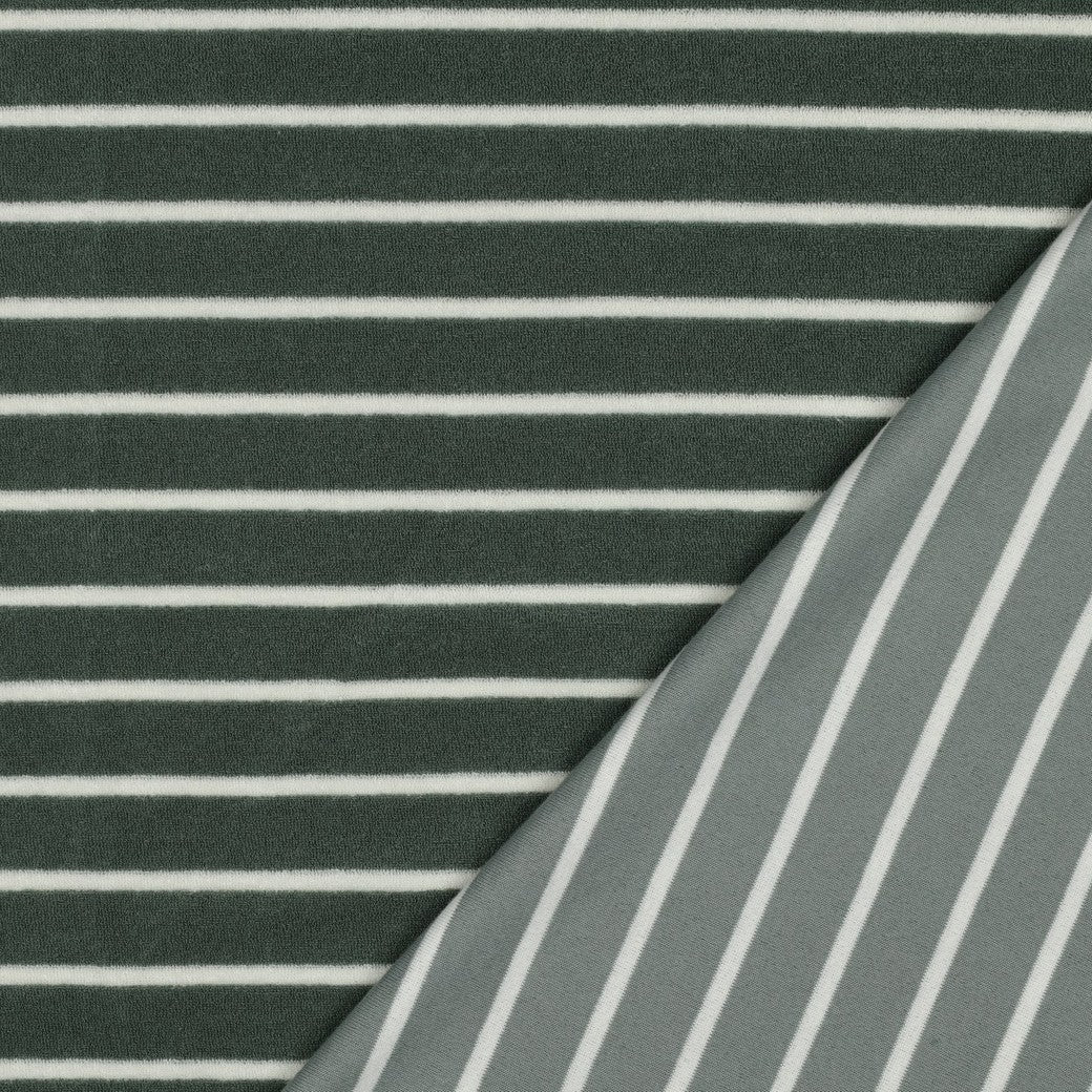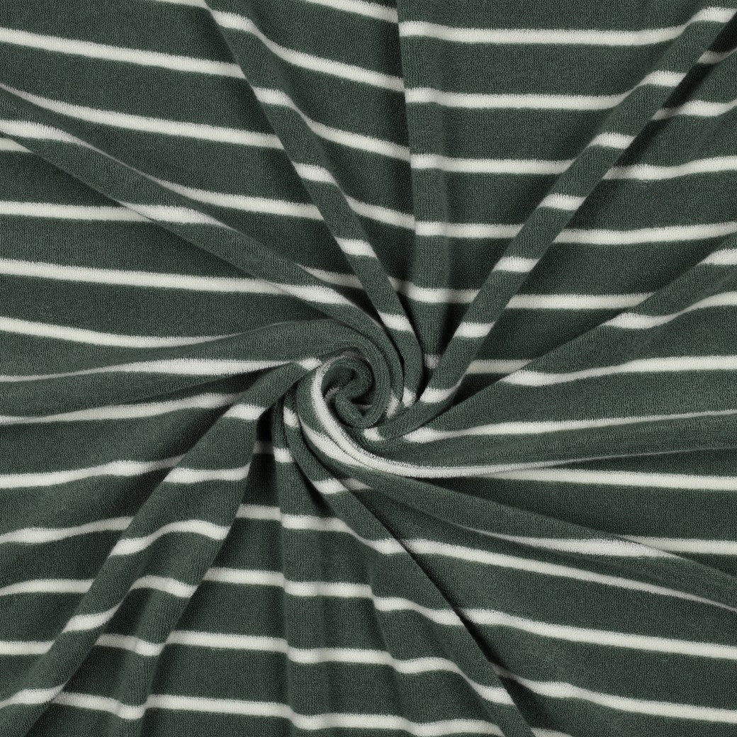 Bald erhältlich - Frottee Baumwolle garngefärbt Streifen salbei ecru