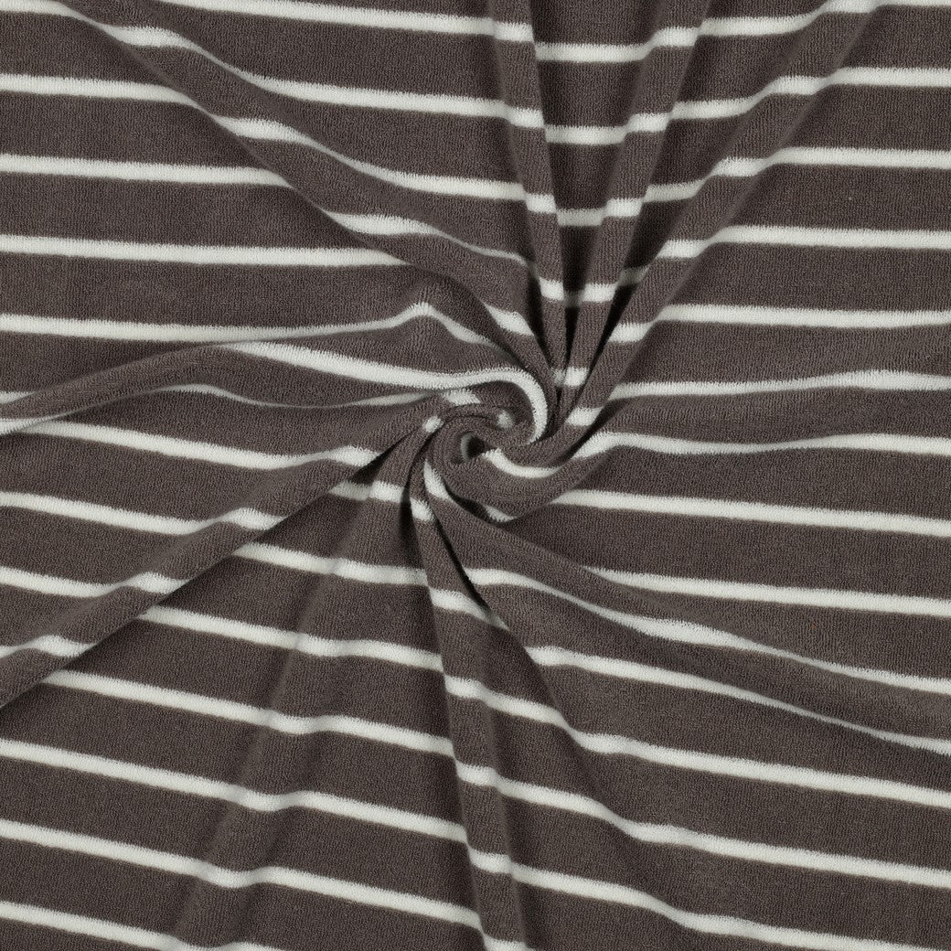 Bald erhältlich - Frottee Baumwolle garngefärbt Streifen taupe ecru