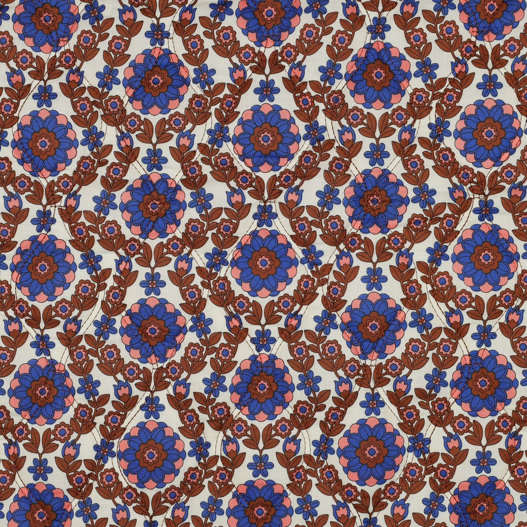 Stepper - Jackenstoff - Taschen - Deko - Doublesided - Baumwoll Voile - Flowers caramel kobalt