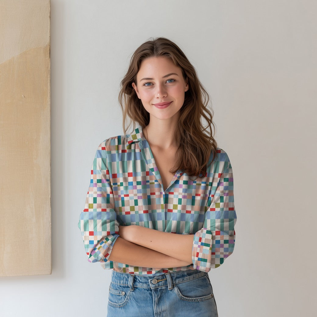 Bald erhältlich - Viskose Bluse digital Abstrakt karo bunt