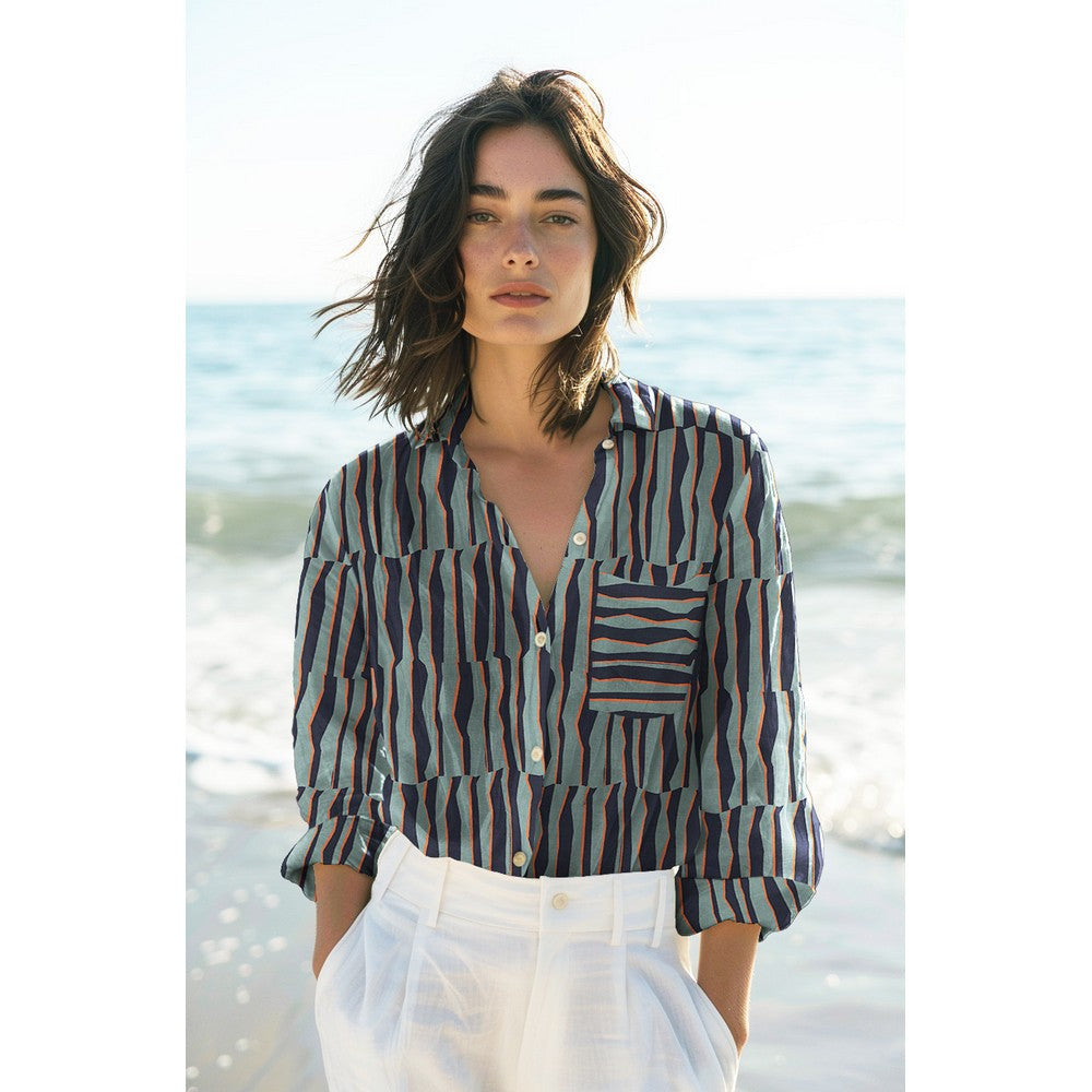 Baumwolle - feine Voile - Geometric - hellpetrol orange
