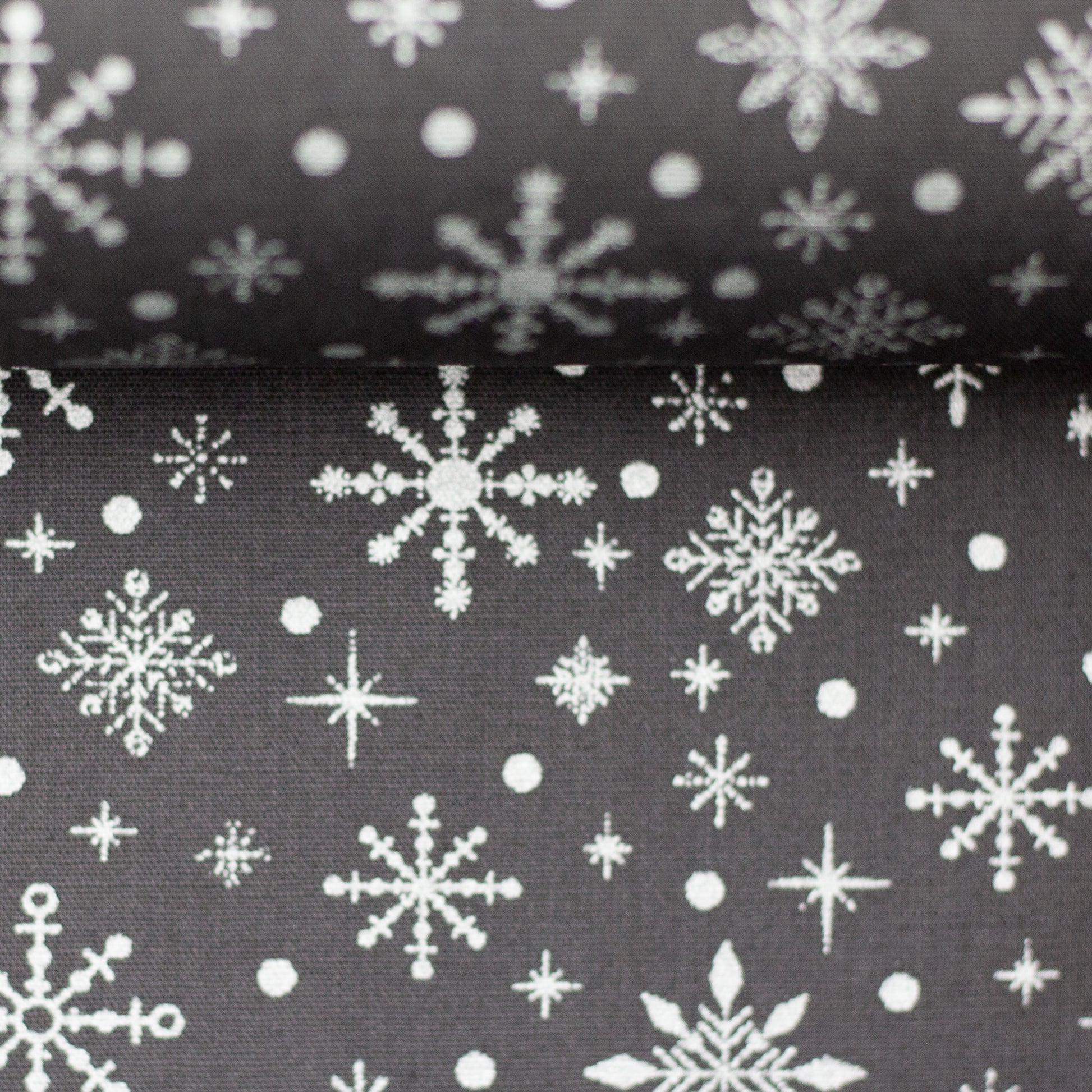Baumwolle XMAS Weihnachten - Neuss - Eiskristalle - silber anthrazit - Swafing!