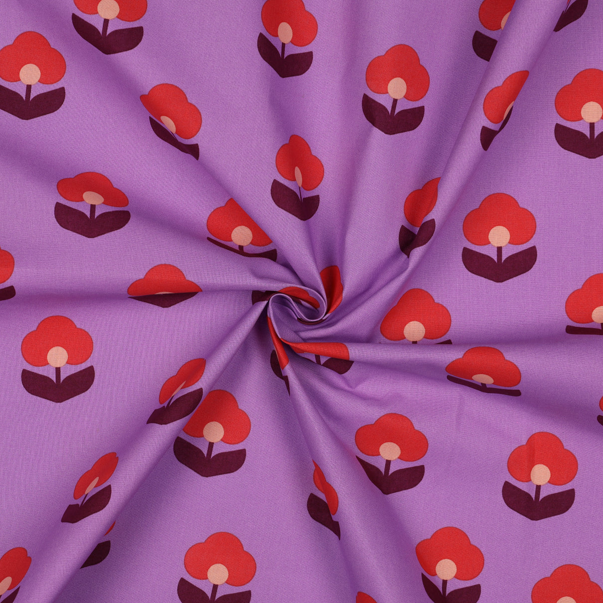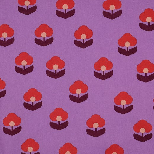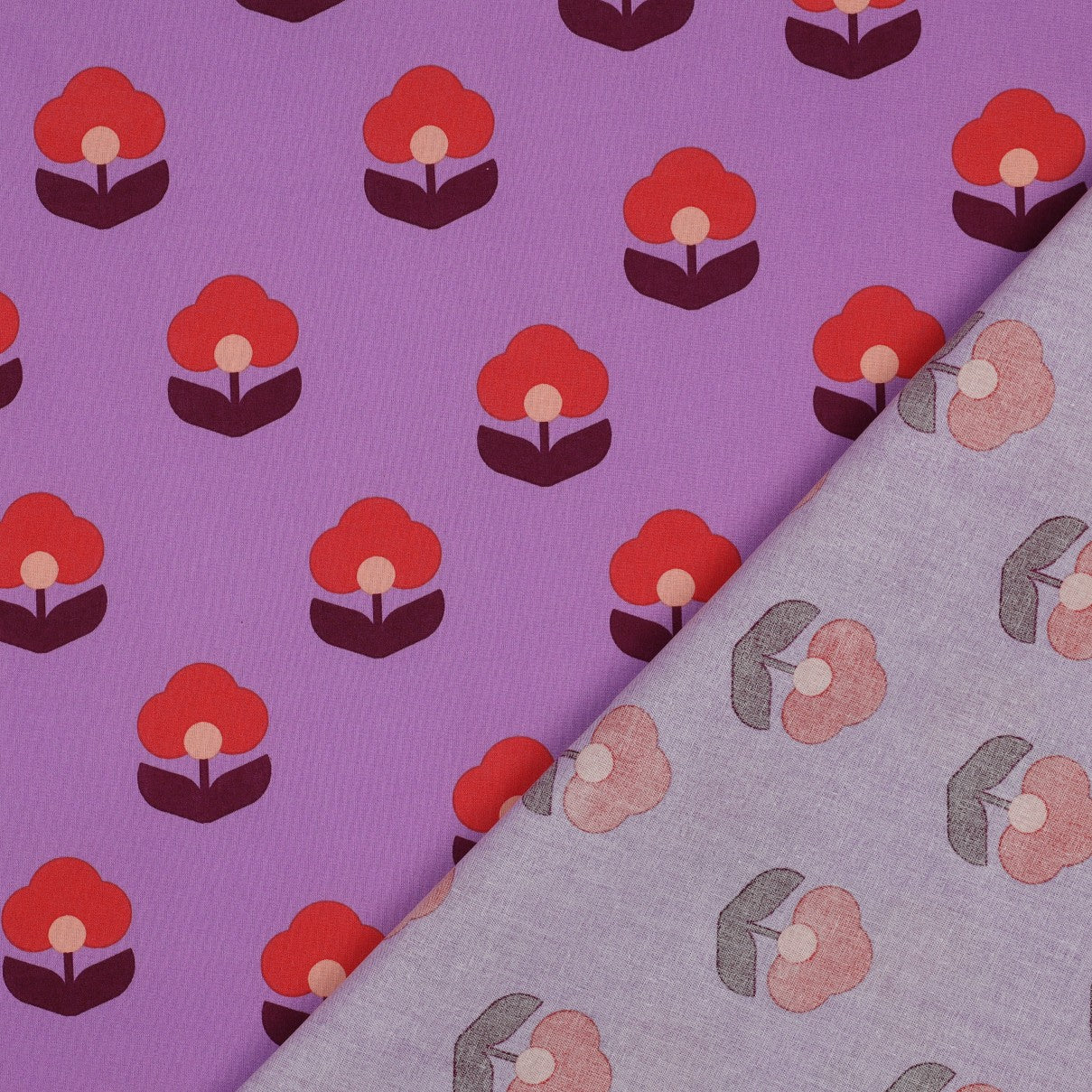 Beschichtete Baumwolle - Retro Flowers - flieder rot aubergine- Poppy