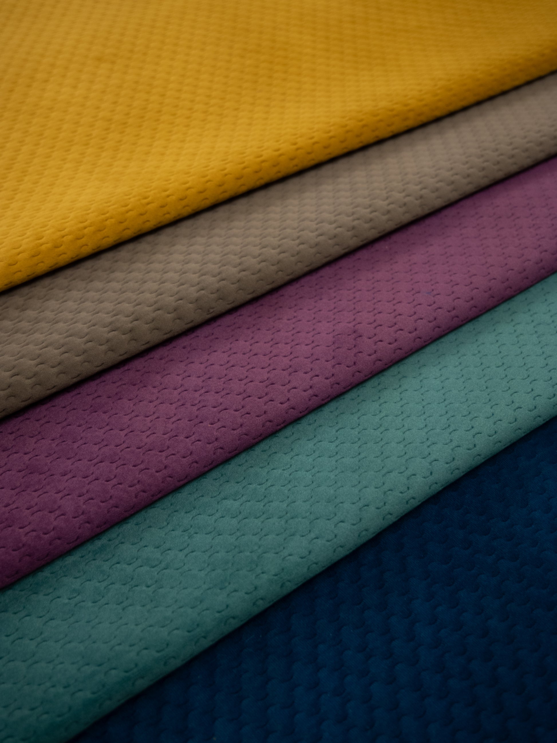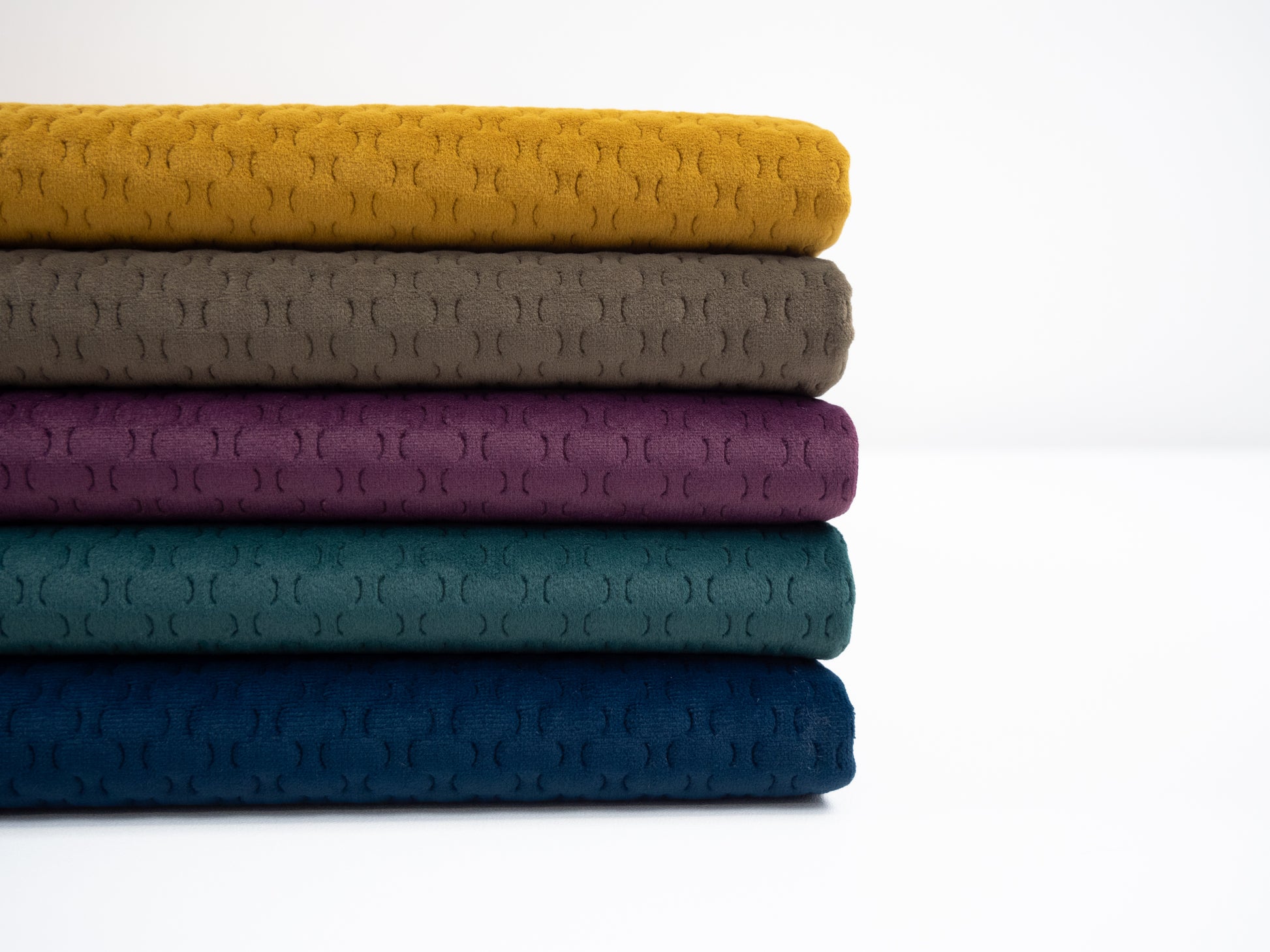 Caracas hat ein Gewicht von ca. 450 g/m², ist 140 cm breit und besteht aus 100 % Polyester – dadurch ist er sehr pflegeleicht, formstabil und einfach toll im Griff.