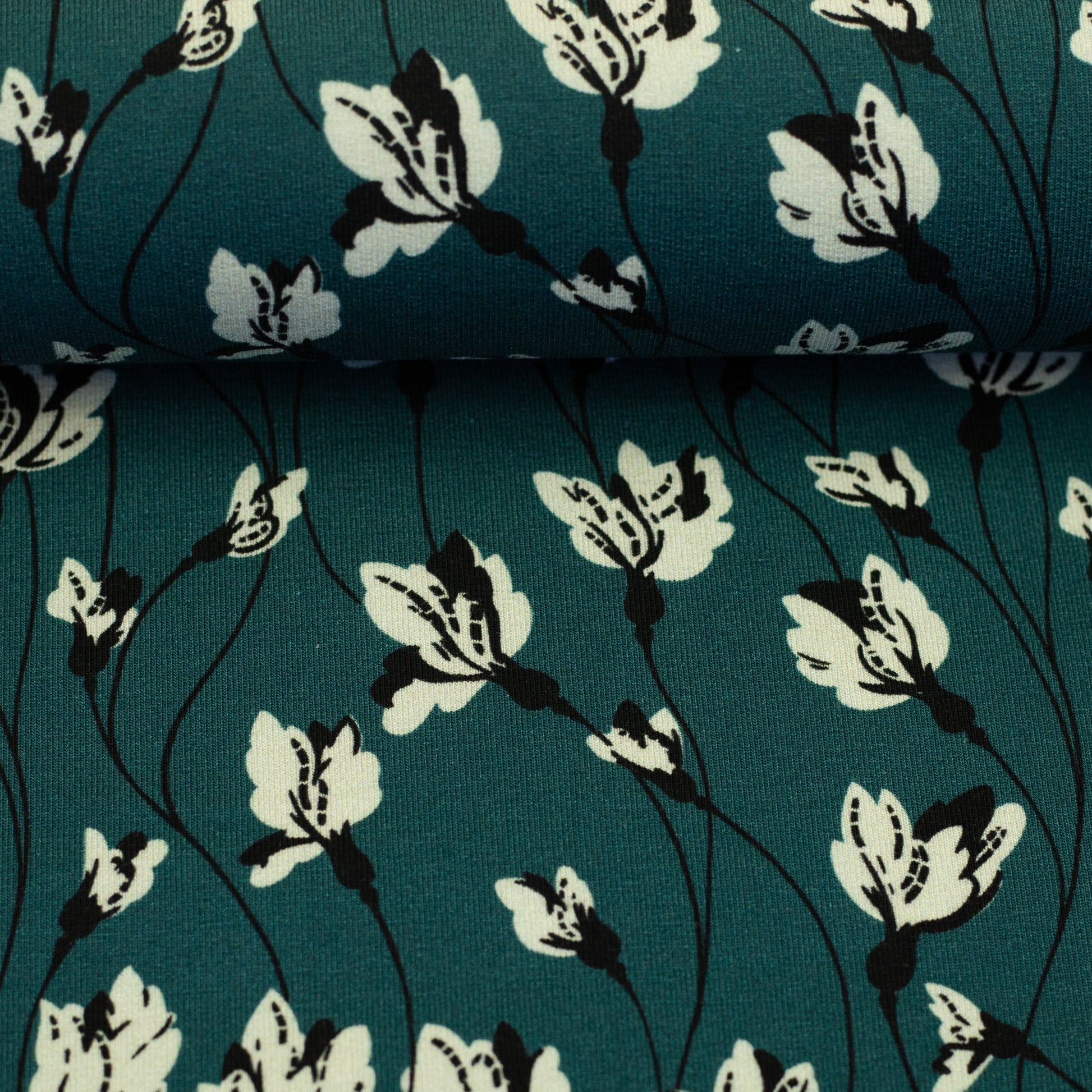 Baumwolljersey - Swafing - Kalamos - Blumen blaugrün