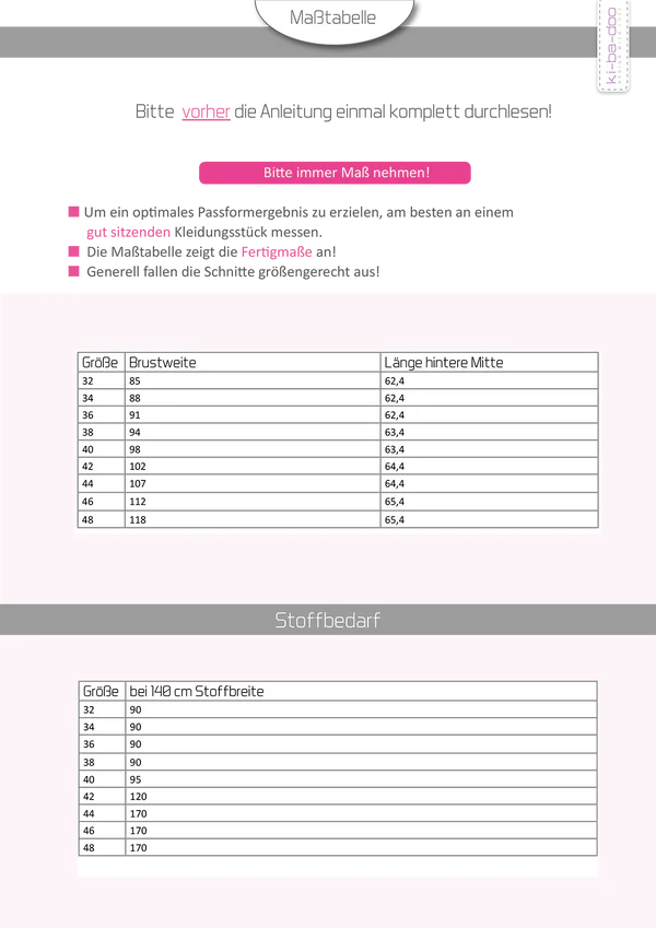 Bitte beachtet, dass es sich NICHT um ein Ebook handelt, sondern um ein Papierschnittmuster!