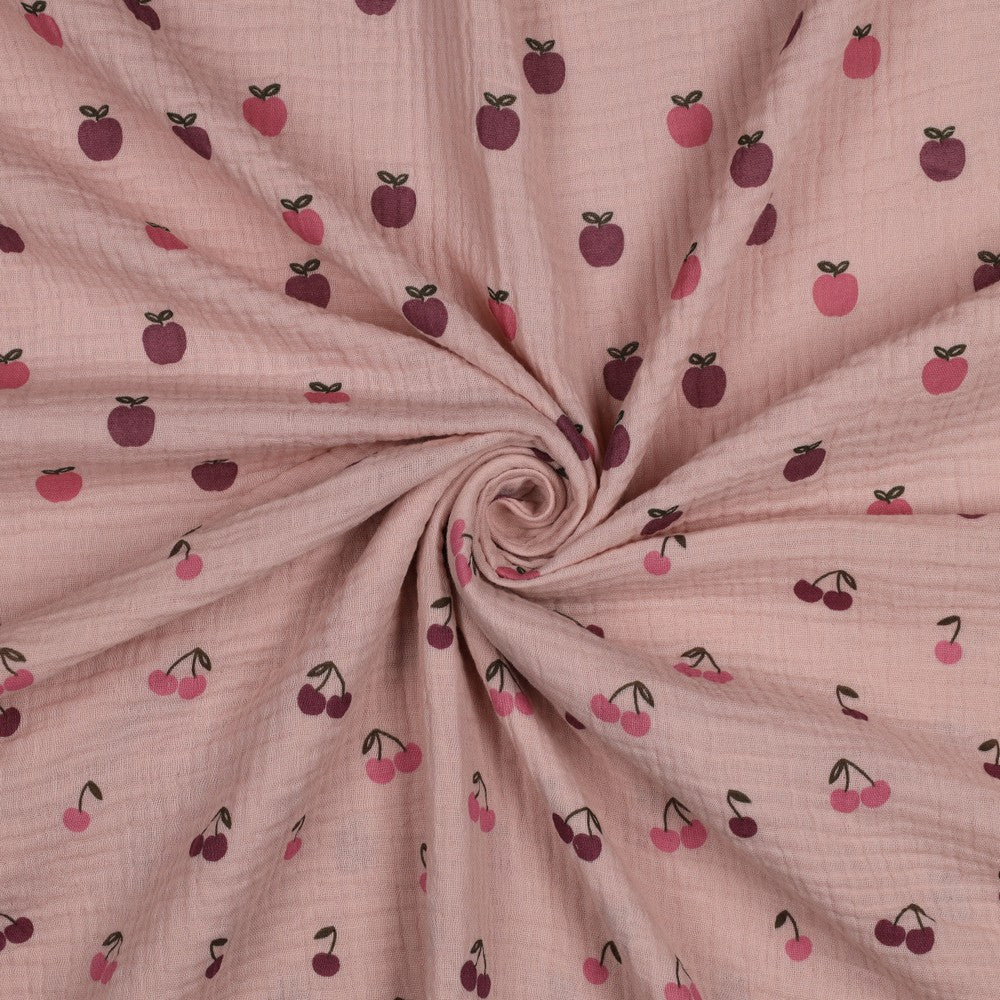 Musselin - Double Gauze  - Poppy - Fruits - Äpfel - altrosa