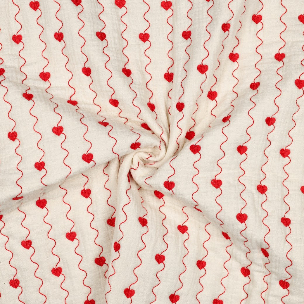 Musselin - Double Gauze - Stepper - Herzen  - natural rot