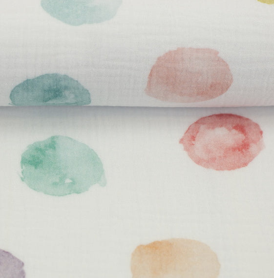 Musselin Thea Abstrakt Tupfen bunt mauve rot