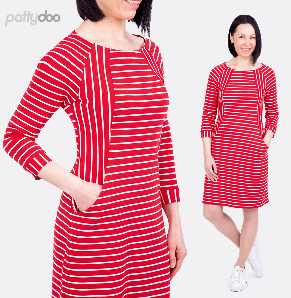 Ob sportliche Kapuzen-Sweatkleider oder elegante Businesskleider - mit unserem Papierschnittmuster "Jade" kannst du beides nähen! Die Teilungsnähte verleihen dem Kleid eine tolle, figurschmeichelnde Optik und beinhalten am Vorderteil praktische Taschen. Der Schnitt bietet dir zahlreiche Variationsmöglichkeiten und ist dank der Videoanleitung wunderbar einfach zu nähen. Wähle zwischen der Kapuze und dem runden Ausschnitt und entscheide dich für lange oder dreiviertellange Ärmel. Mit Hilfe einer einfachen Anpassung kannst du auch sommerliche Kurzarmkleider nähen.