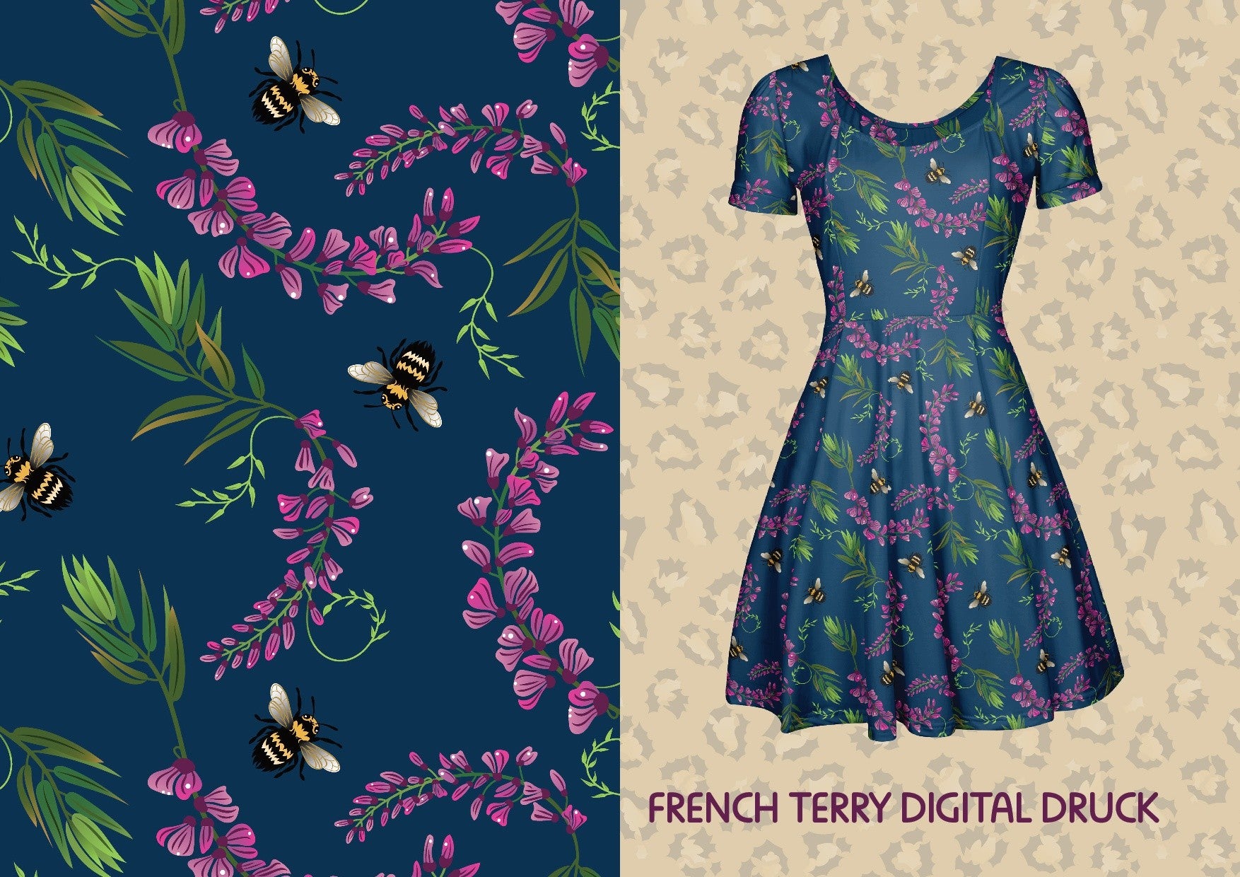 Diese lassen sich natürlich auch hervorragen kombinieren, indem ihr die Viskose in den Terry als Innenfutter verarbeitet. Im Designbeispiel wurde die Viskose Bee Leo verarbeitet.