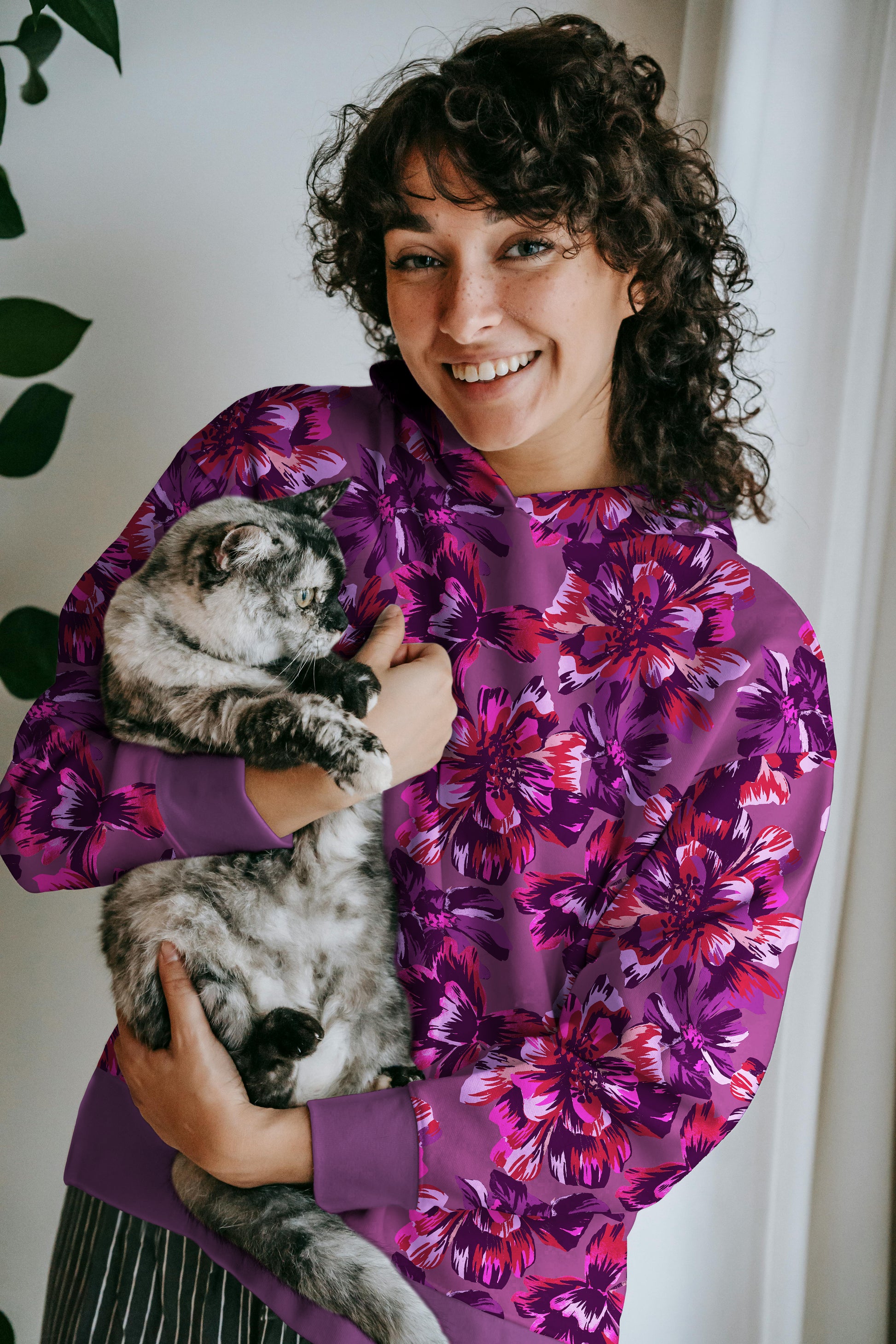 Sweat - French Terry - Poppy - Flowers - dark purple - Beeretöne!