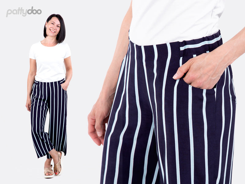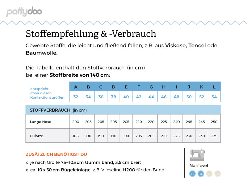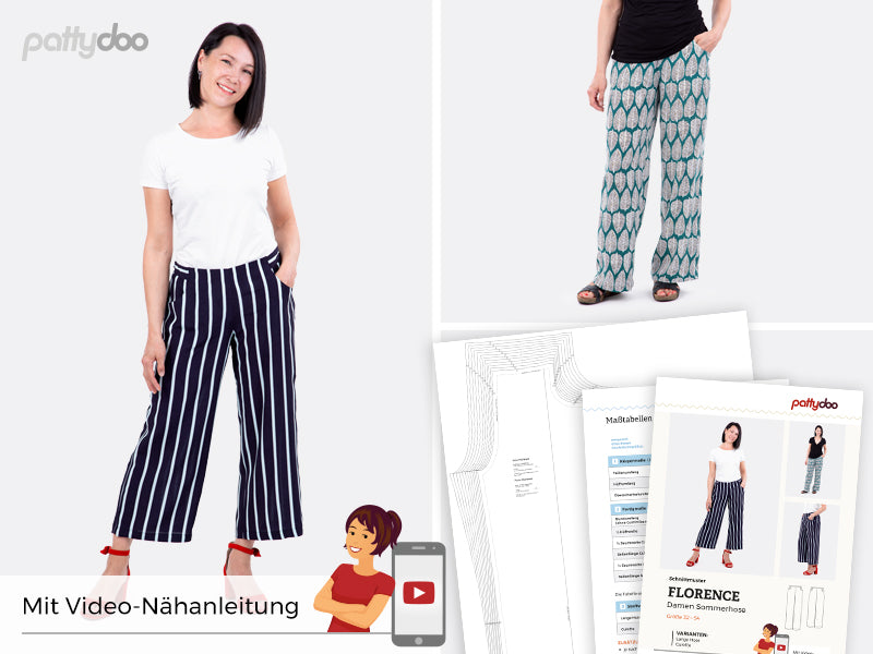 Wir nähen gemeinsam an diesem Abend, nach einem tollen Schnittmuster von Pattydoo, die lässige Leinenhose Florence. Eine wunderschöne und toll fallende Hose, perfekt für die kommende wärmere Saison. Ob elegant einfarbig oder aber in einem tollen Muster, sie wird mit Sicherheit eines euer neusten Lieblingsteile im Kleiderschrank. Wir arbeiten sie aus Leinen und ohne Gesäßtaschen!